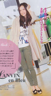 As a girl who wears glasses I love seeing them featured in J-mags. The middle pair and the pair just to right of the middle pair look like ones I would wear. The middle pair is definitely my favorite. However, how cool is the Gucci pair?!?! It looks like she's not even wearing glasses. Too bad Gucci glasses will never be in my budget.