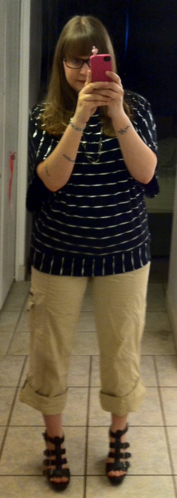Bought this top at Goodwill forever ago and have been trying to wear it ever since. I think I did ok. Both top & pants Goodwill, shoes Kohl's.