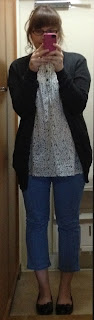 Had a freak accident Monday night and sliced into my finger. I've been using dull knives for like 10 years, I have no idea how sharp new knives actually are. Anyway, Shirt Uniqlo, jeans Colleen collection (Target), shoes Payless, necklace Kohl's and jacket H&M.